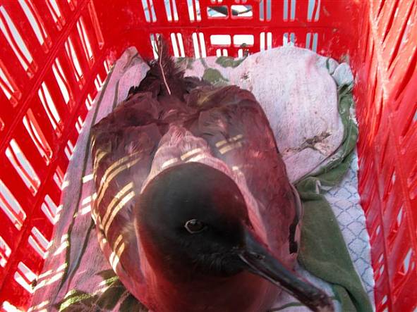 First reported on 24 June 2005 where it came ashore at Ponto Malangane in Mozambique totally exhausted. It was then transported to the "Free Me" Rehabilitation Centre in Randburg outside Johannesburg in South Africa. After some initial care there, it was then transported by air to Cape Town where it took up residence at the SANCCOB Rehabilitation Centre on the borders of Rietvlei Nature Reserve. It was eventually taken out to sea on one of the local pelagic birding trips on 4 July 2005 where it was released. |