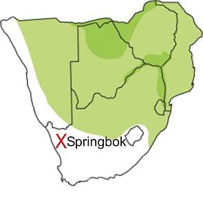 Reported on 16 March 2006 from just outside Springbok in the Northern Cape. These birds are normally restricted to the north and east of the subregion.