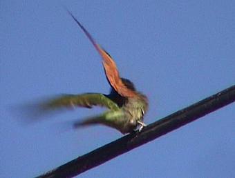 First reported on 23 July 2002 from Ebenhauser on the lower Olifants River north of Lambert's Bay in the Western Cape. Three birds were present including one fine adult and 2 sub-adult birds. It would appear as if these birds are of the Angolan race M. s. alternans which is normally only encountered within the Southern African subregion along the Cunene River in Northern Namibia. This would constitute the first record of this race for South Africa and has already caused quite some excitement amongst local birders. These video grabs were taken on 17 August 2002. |