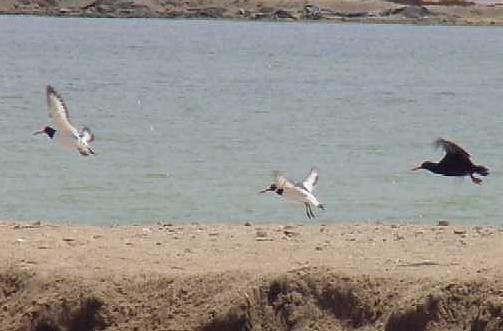 These birds have been present at the Walvis Bay Salt Works for quite some time. The adult on the left has been in the area for at least the last 4 years whilst the sub-adult joined it earlier this season. They were photographed there on 5 March 2004. |